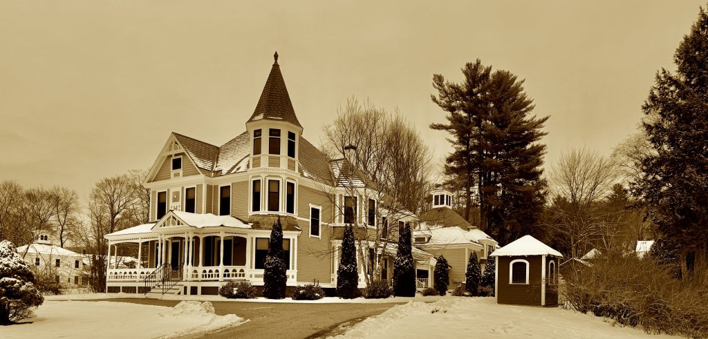Built in 1889 for Dr. Abel Parker Richardson (1834–1900), this house is one of Walpole’s finest expressions of late-Victorian Queen Anne architecture. The asymmetrical massing, prominent corner tower with conical roof, varied shingle textures, decorative gable ornament, and expansive wraparound porch with turned posts and balustrades are all characteristic of the style. The design emphasizes verticality and picturesque effect, while the porch unifies the façade and reflects the era’s emphasis on domestic leisure and display along Main Street.